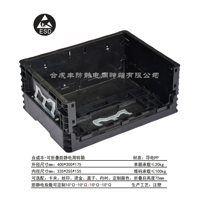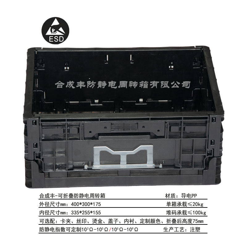 編 號:合成豐-可折疊防靜電周轉(zhuǎn)箱 4316 工藝: 注塑 單箱承載:30kg